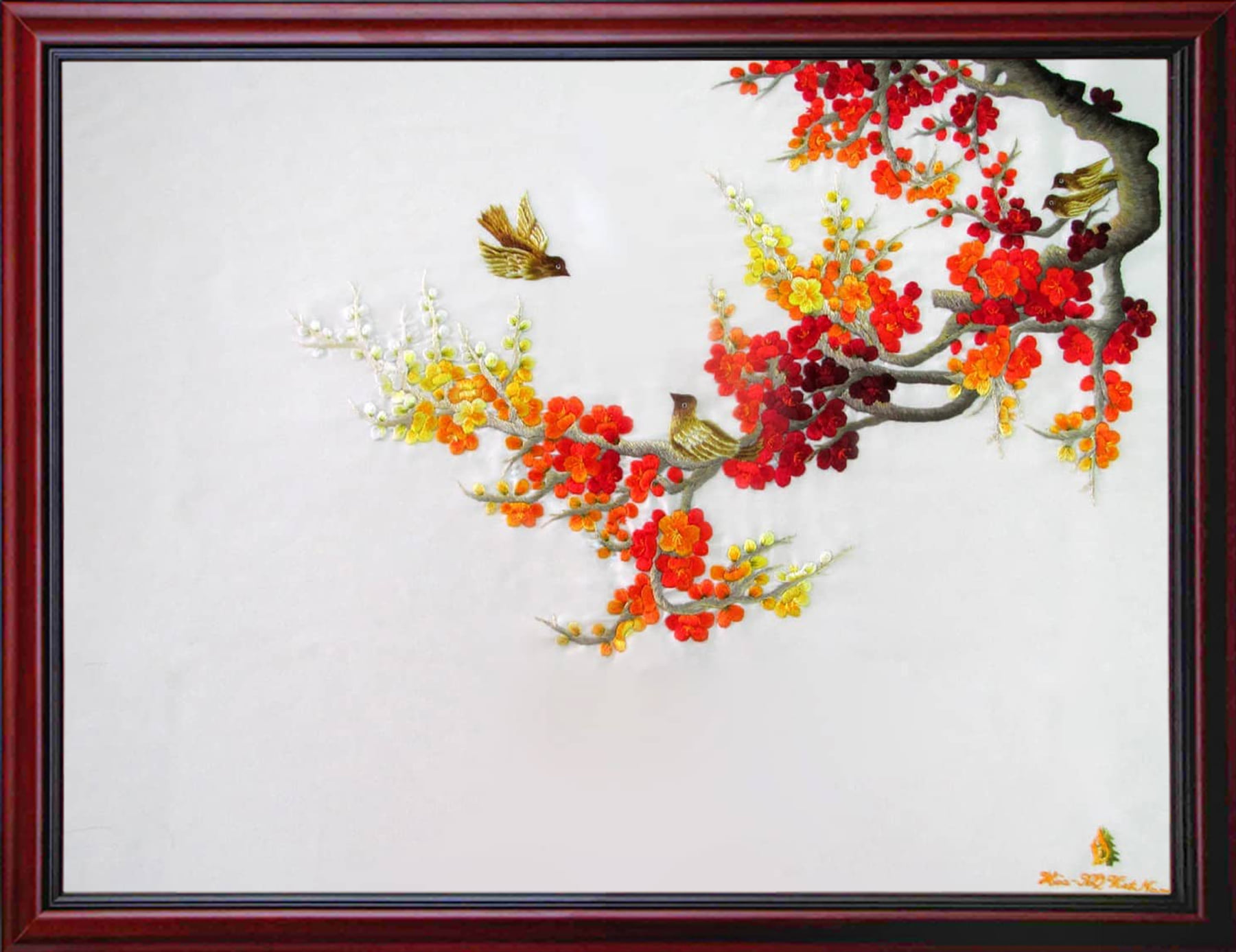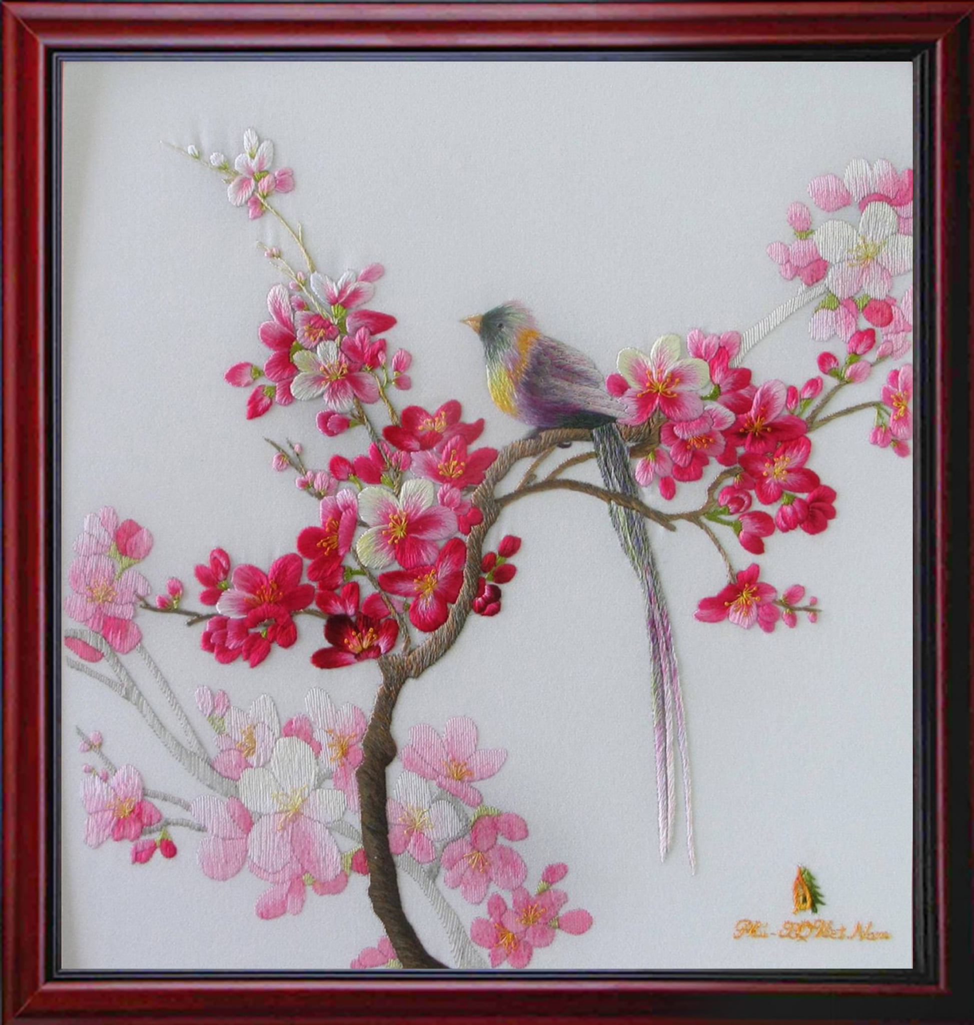 Tác phẩm tranh thêu: MÙA XUÂN TÌNH TỰ
