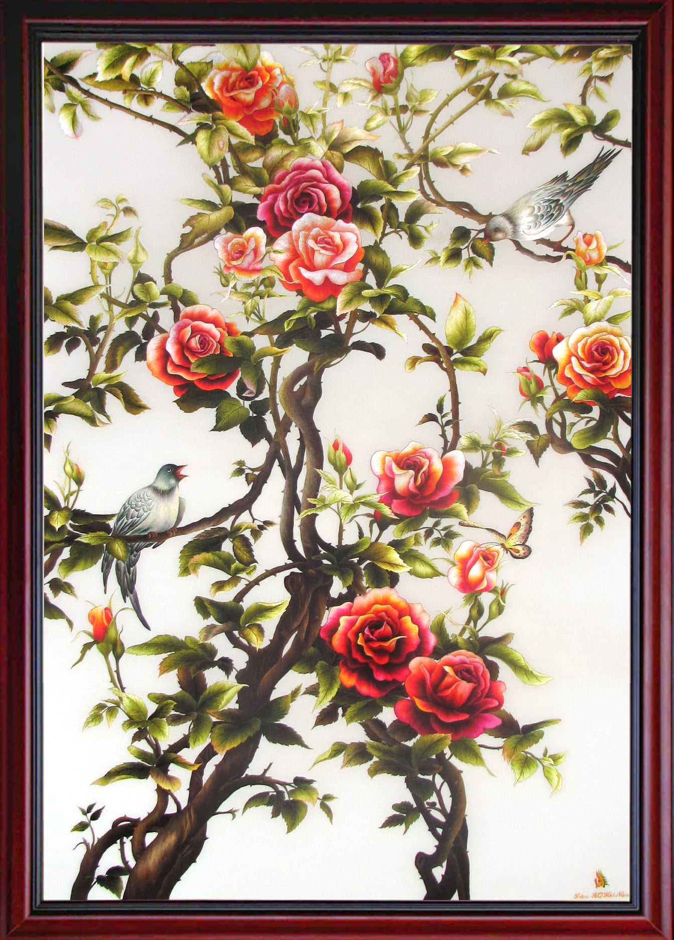 Tác phẩm tranh thêu: KHÚC CA VƯỜN HỒNG