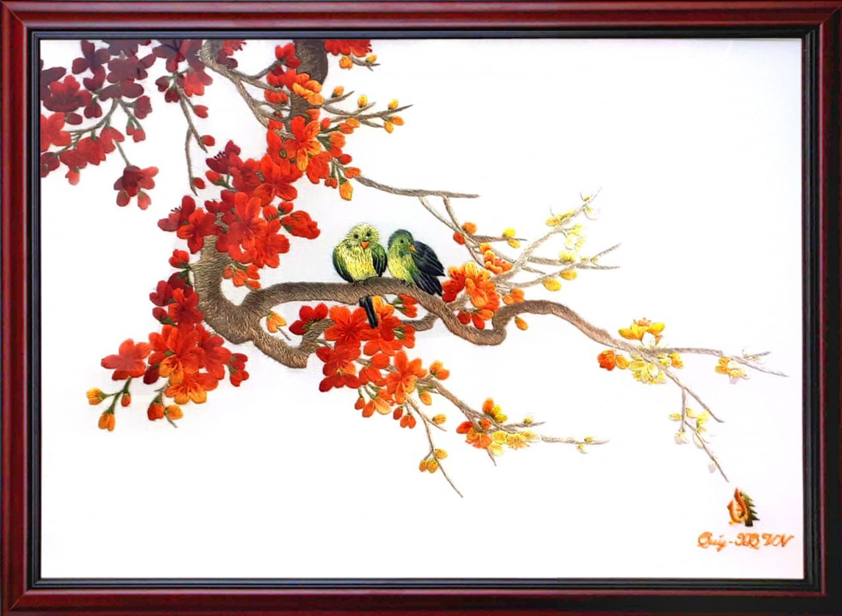 Tác phẩm tranh thêu: SỨ GIẢ MÙA XUÂN