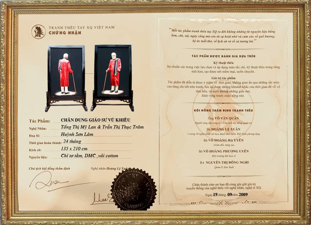 Mỗi tác phẩm tranh thêu tay XQ là một sinh linh run rẩy trước cuộc sống. Vì vậy, luôn kèm theo giấy chứng nhận và lý lịch cá tính.