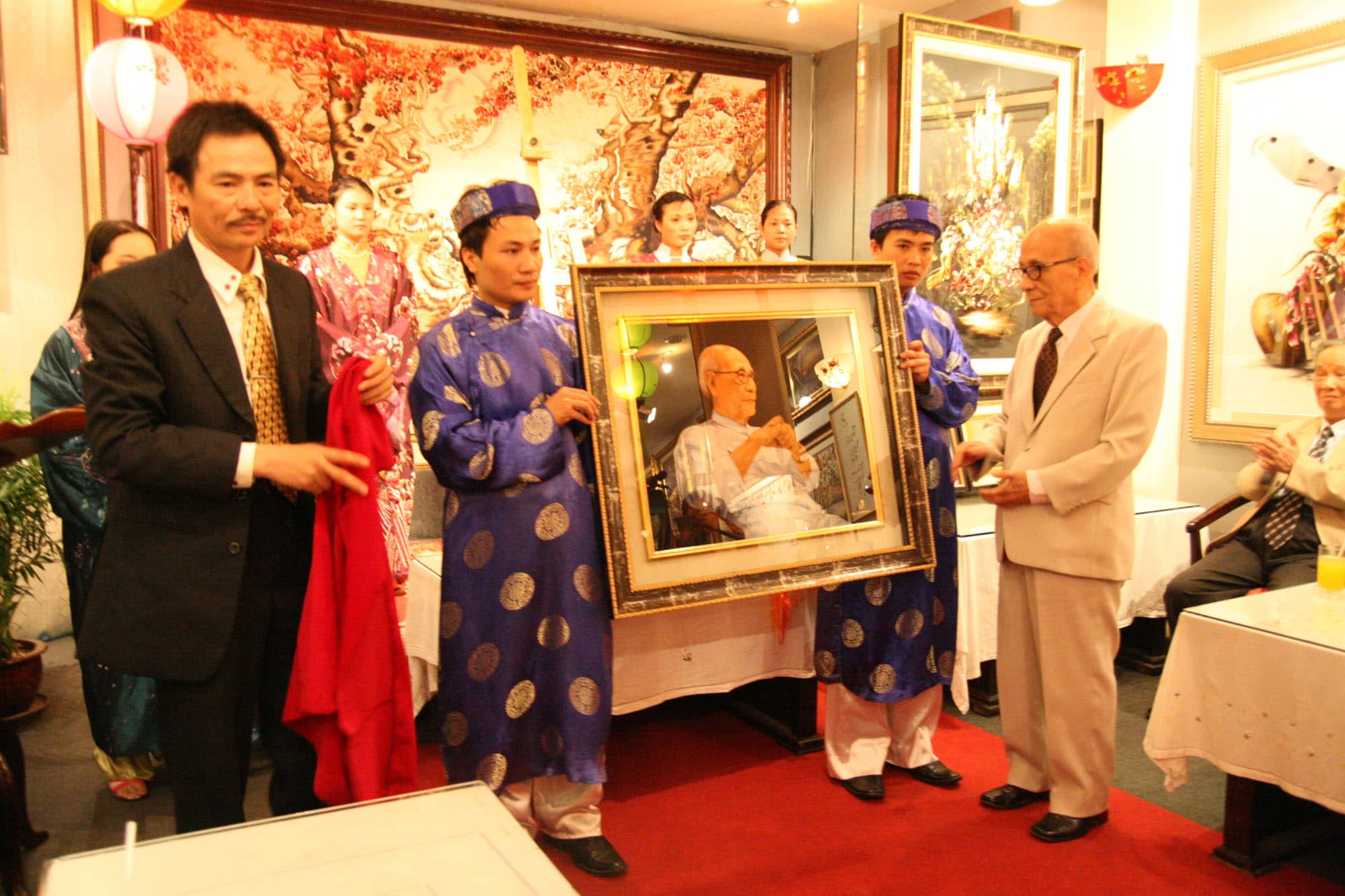 Nghi lễ hoàn thành tác phẩm chân dung, nghi lễ buộc sợi chỉ ước nguyện của giáo sư Vũ Khiêu