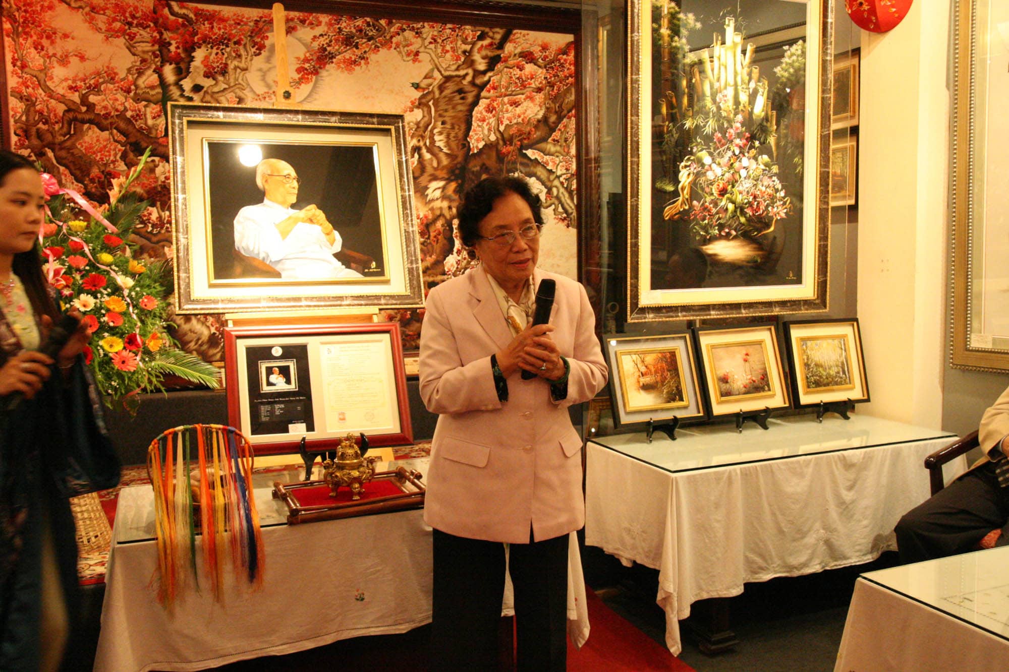 Tôi rất tiếc do điều kiện sức khỏe và tuổi tác, không thể vào chia vui với toàn thể nghệ sĩ và công nhân viên của Trung tâm phát tiển nghề thêu rực rỡ nhất trên đất nước. Tôi đặc biệt cảm ơn tấm lòng của hai bạn tôi Võ Văn Quân và Hoàng Lệ Xuân đã thể hiện một tình bạn vô cùng hiếm có, tổ chức thêu bức tranh có một không hai đối với tôi.