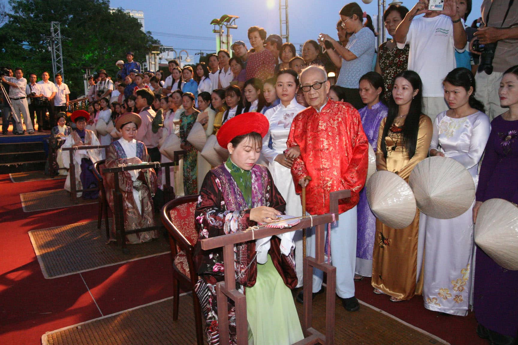 3.Tôi chào mừng lễ hội của các bạn tại Cố Đô Huế, lễ hội lấy tên là XQ Hội thiếu nữ "Nhặt Cỏ Vườn Trăng". chính là hồn thiêng liêng của tổ tiên chúng ta từ bao đời, đã kết đọng tại đây hôm nay để cùng hòa nhập với niềm vui của tất cả các bạn. Tôi hiểu vì sao các bạn đã dành một phần nghi lễ để tưởng niệm tổ tiên, các thế hệ đã trải qua bao nhiêu gian khổ để lại cho chúng ta Nước non gấm vóc này.