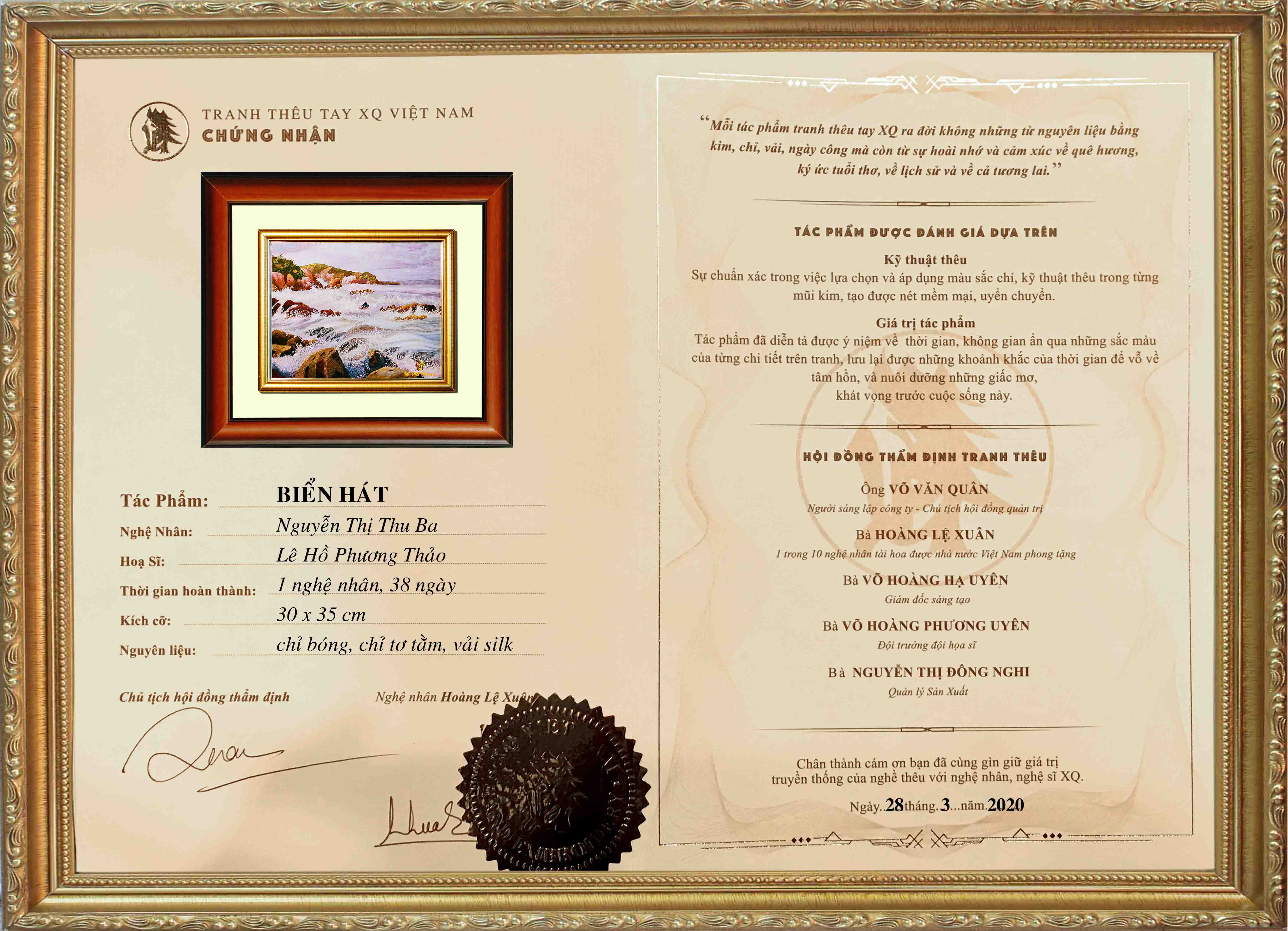 Mỗi tác phẩm tranh thêu tay XQ là một sinh linh run rẩy trước cuộc sống. Vì vậy, luôn kèm theo giấy chứng nhận và lý lịch cá tính.