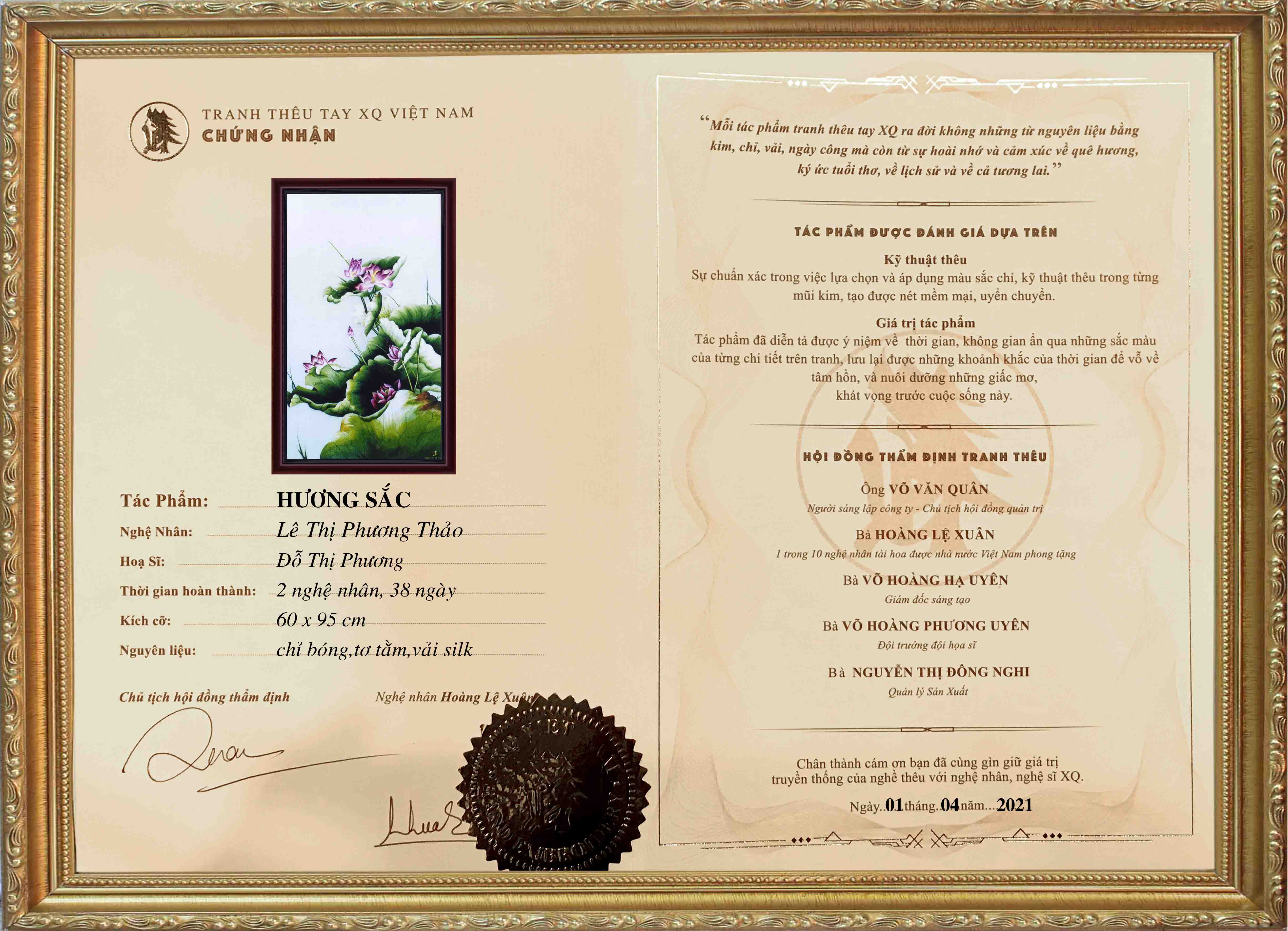 Mỗi tác phẩm tranh thêu XQ là một sinh linh run rẩy trước cuộc sống. Vì thế, luôn kèm theo giấy chứng nhận và lý lịch cá tính.