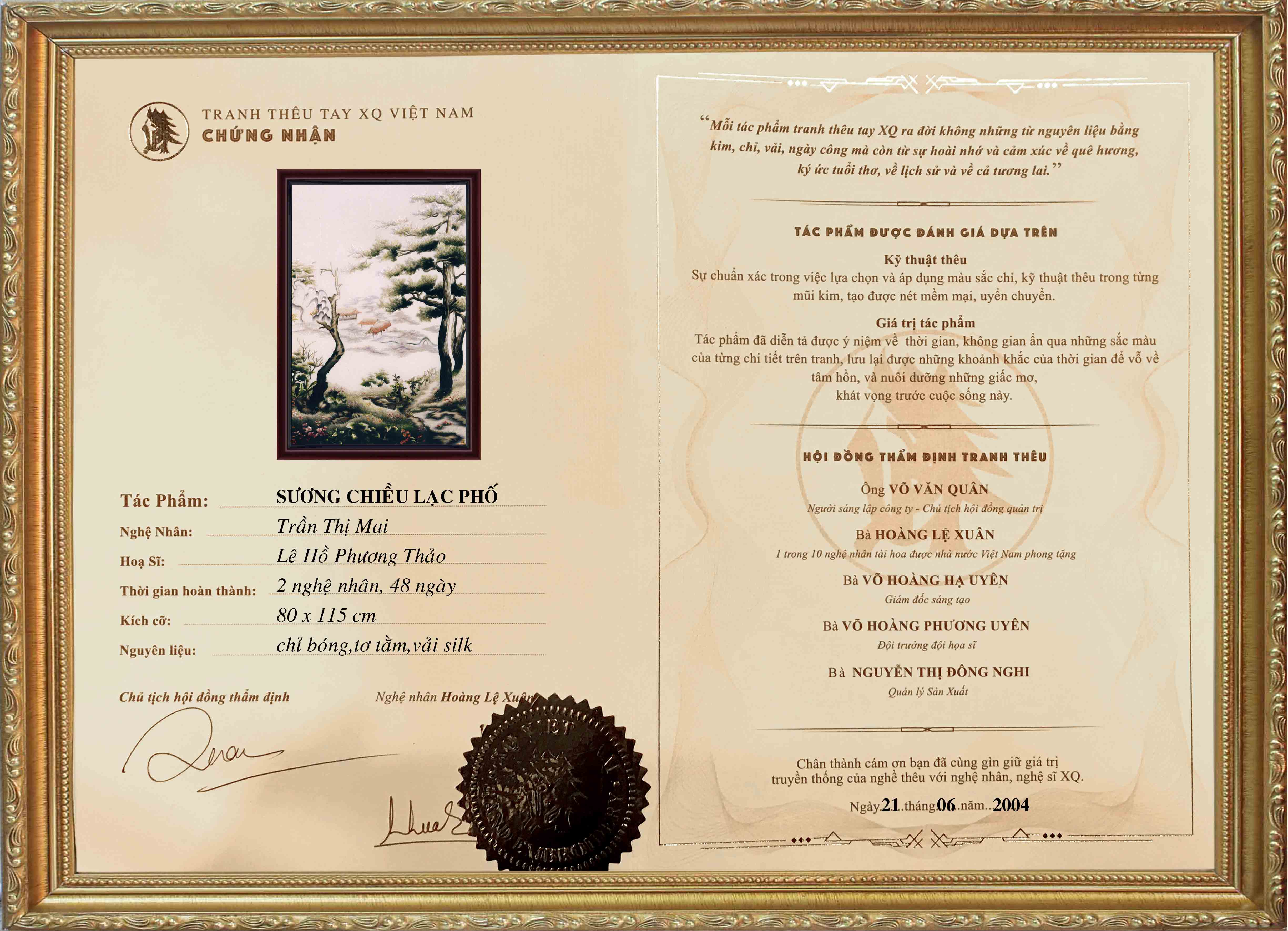 Mỗi tác phẩm tranh thêu tay XQ là một sinh linh run rẩy trước cuộc sống. Vì vậy, luôn kèm theo giấy chứng nhận và lý lịch cá tính.