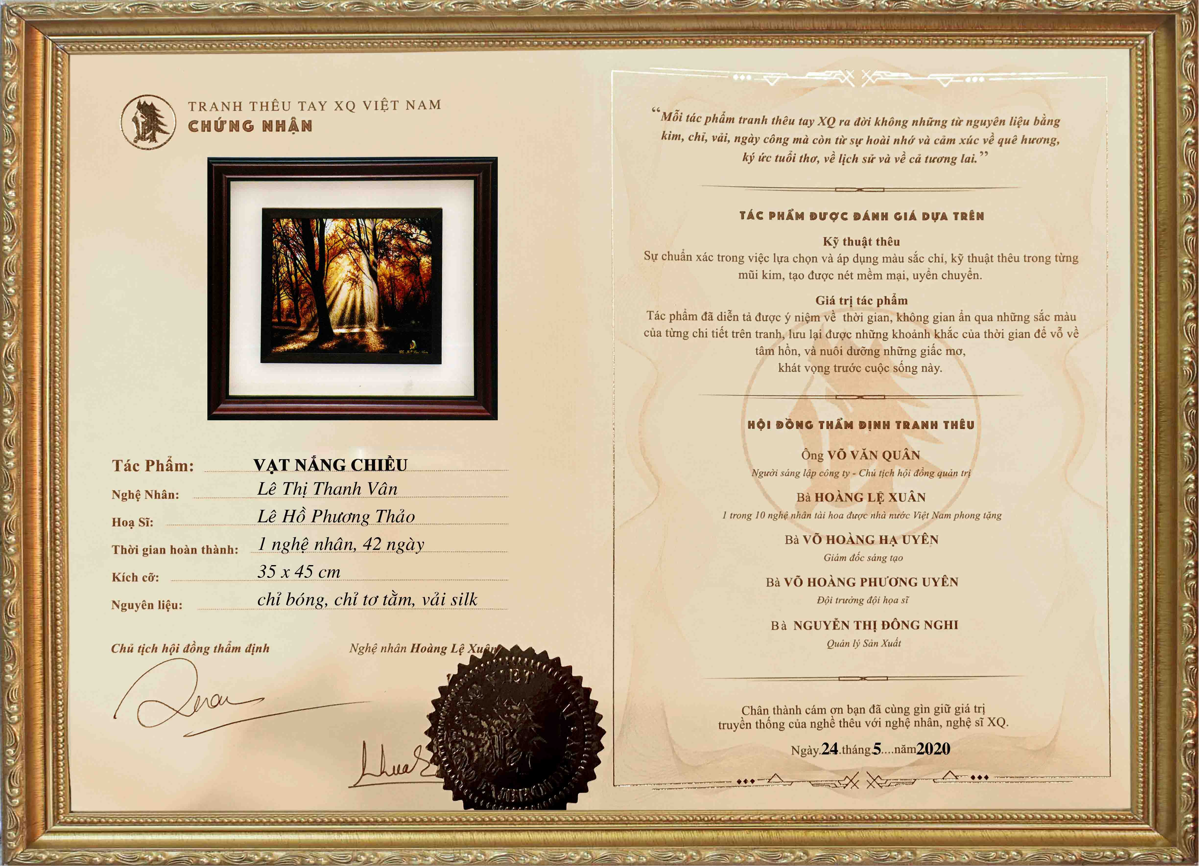 Mỗi tác phẩm tranh thêu tay XQ là một sinh linh run rẩy trước cuộc sống. Vì vậy, luôn kèm theo giấy chứng nhận và lý lịch cá tính.