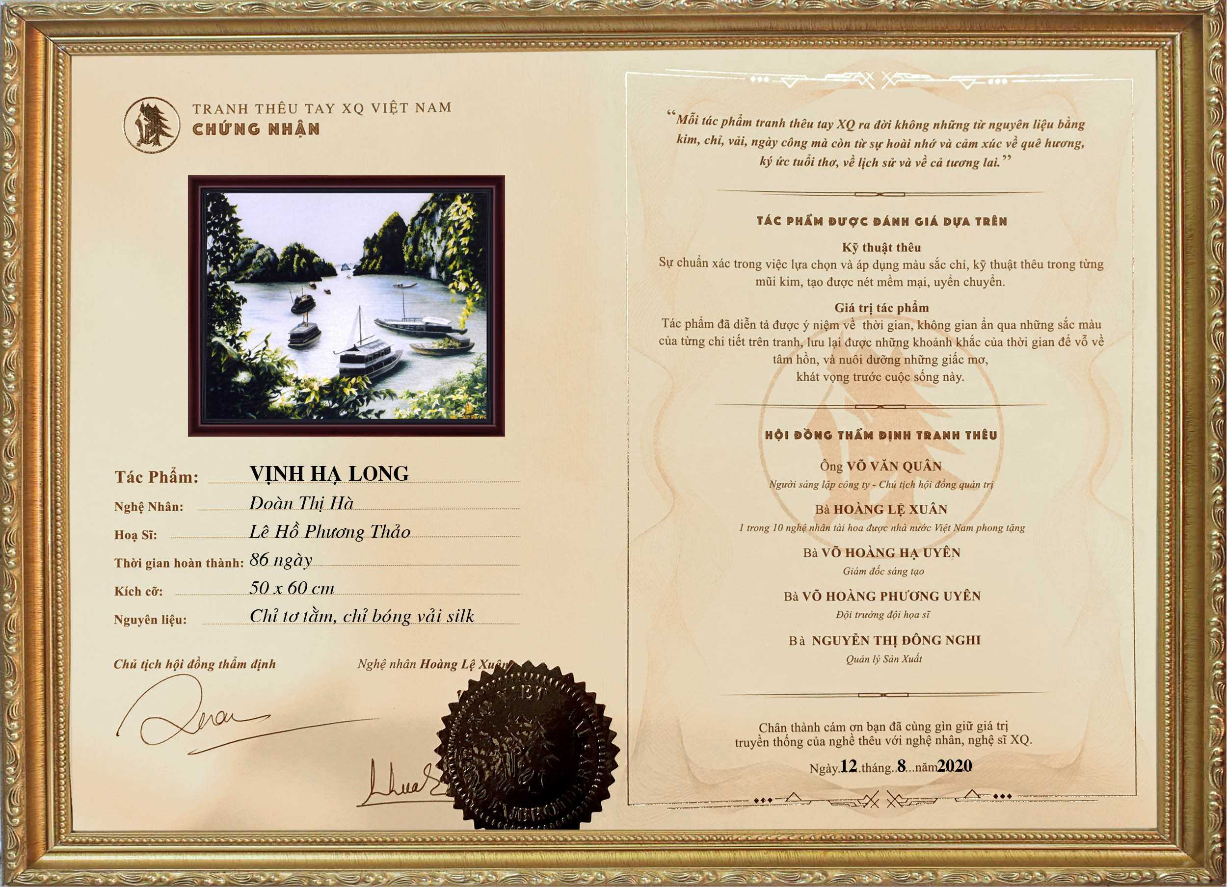 Mỗi tác phẩm tranh thêu XQ là một sinh linh run rẩy trước cuộc sống. Vì thế, luôn kèm theo chứng nhận và lý lịch cá tính.