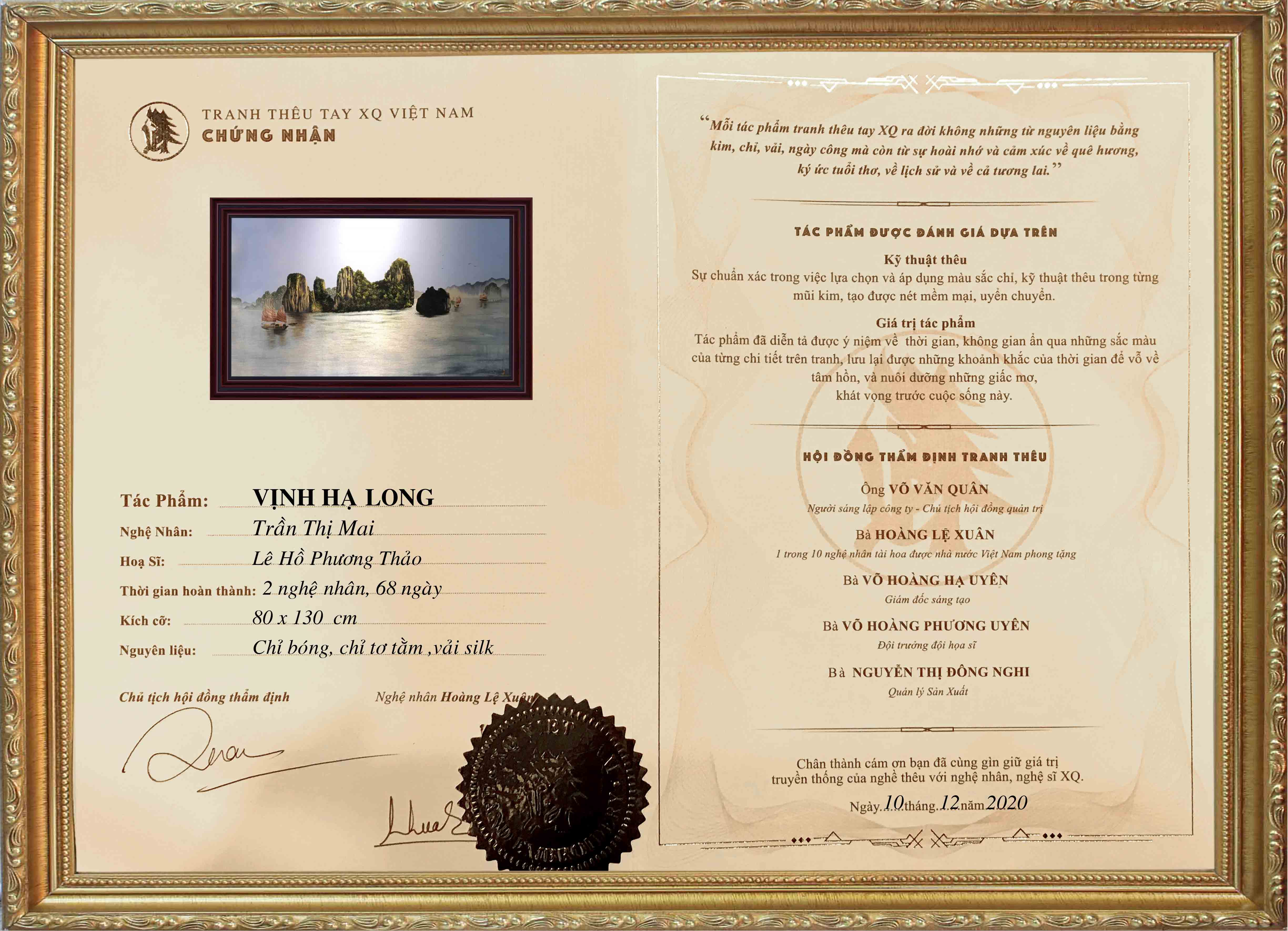 Mỗi tác phẩm tranh thêu XQ là một sinh linh run rẩy trước cuộc sống. Vì thế, luôn kèm theo chứng nhận và lý lịch cá tính.